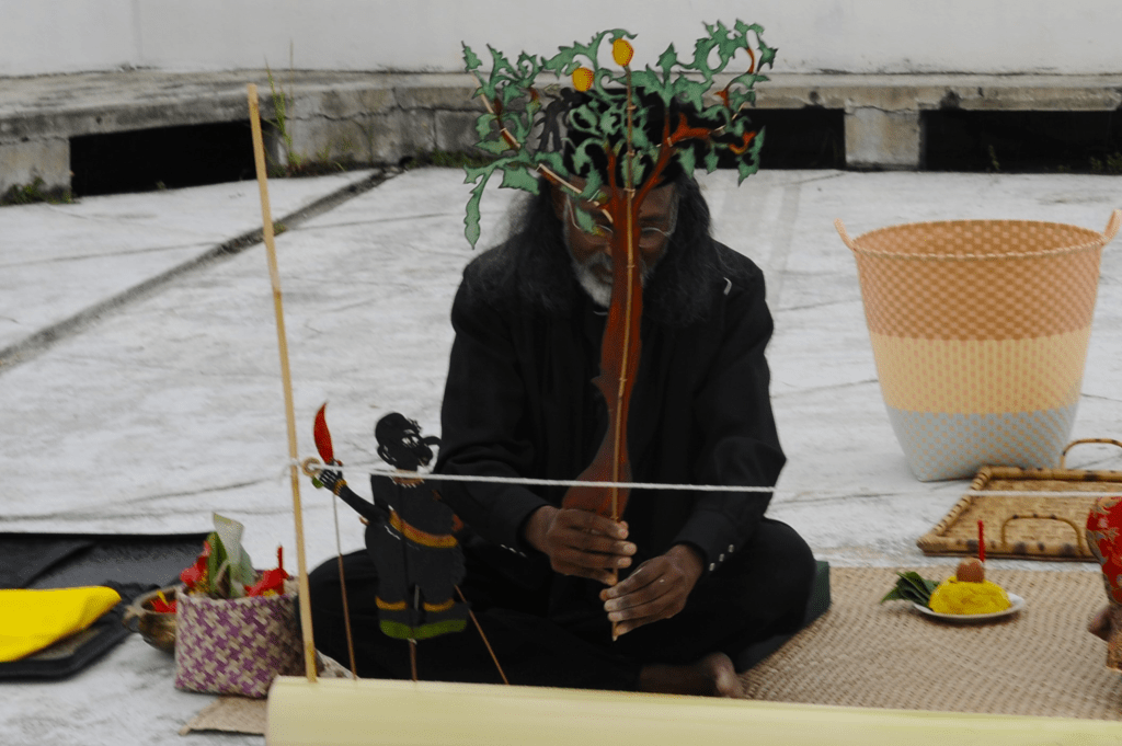 At the height of the performance (see performance notes) the Koboi invokes the spirit of the Pokok Pauh Janggi. He raises the puppet , waves it about, showing only back, and saying-