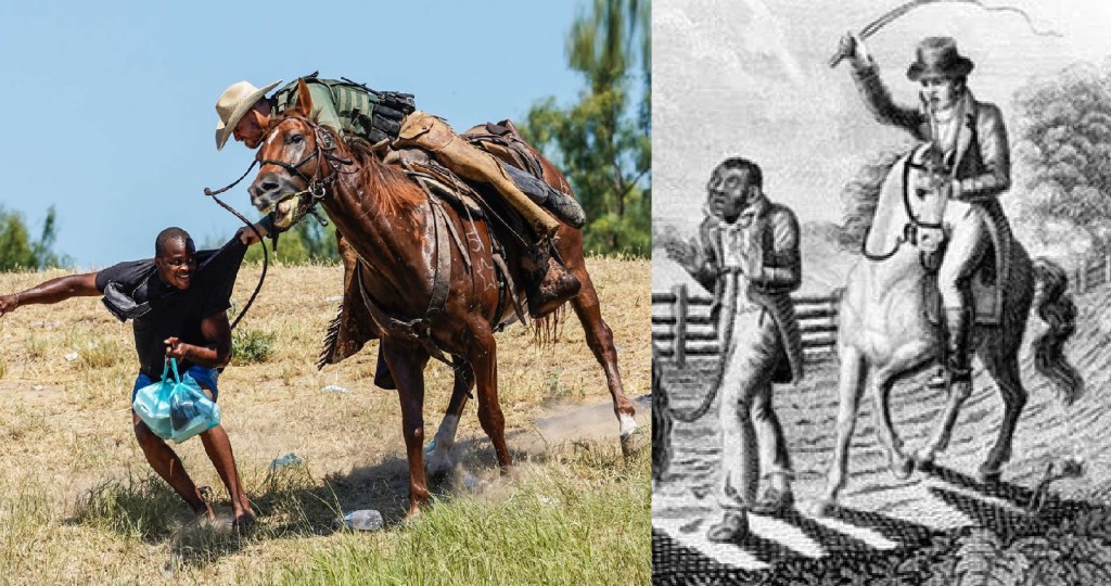 In my pervious post titled Deja Vu: Planet of the Apes I discussed the imprint made on my mind by the violent chase scenes in the said film. This impression was revived by the recent border patrol images coming out of Del Rio, Texas. I noted in that post how this is one of two images brought forth in me, the other being that of the “historical injustices suffered by black people in the US..” Upon further reflection, however, I have come to realize that these two images are infact one and the same. Urko and his fellow gorillas are literally black, while the regressed, abject, Yahooesque humans are Caucasian. This seems to be an artistic inversion of the historical image of the American slave patrol and I suggest that it is in this very reversal that the power of these chase scenes lies.